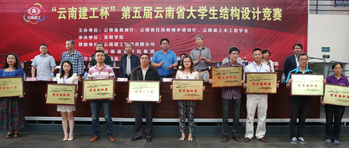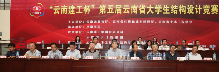7月27日至29日,由云南省教育厅、云南省住房和城乡建设厅、云南省土木建筑学会主办,昆明学院承办的“云南建工杯”第五届云南省大学生结构设计竞赛在昆明学院成功举行。云南省住房和城乡建设厅总工程师郭敏,云南建工集团有限公司总工程师沈家文、设计总监张辉,昆明学院副校长董建华,昆明理工大学副校长牛治喨,云南省教育厅高教处调研员谢怀昆,云南省住房和城乡建设厅勘察设计处副处长邓宏旭,云南省土木建筑学会秘书长李荣,云南省设计院集团结构中心主任湛华及各参赛高校相关学院领导出席大赛开、闭幕式,为获奖队员颁奖,并在大赛期间参加场外土木工程专业人才培养研讨会。开、闭幕式由昆明学院城乡建设与工程管理学院院长徐从发主持。