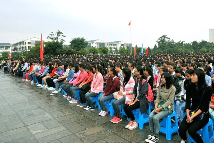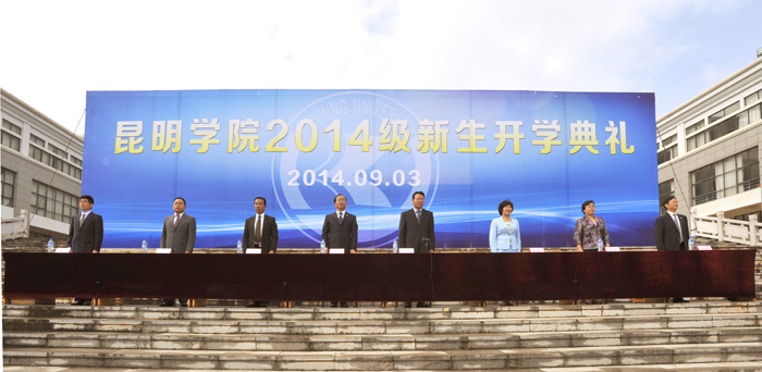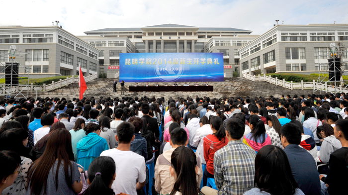 9月3日上午,我校2014级新生开学典礼在聂耳广场隆重举行。学校党委书记陈世波,校长蒋永文,党委副书记、纪委书记李媛芬,副校长李翔、熊晶、郭华、刘海发,校长助理郑克刚,中层干部、辅导员、班主任和2014级新生参加了典礼。