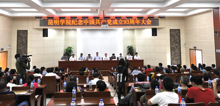 党委书记陈世波在讲话中回顾了中国共产党成立93年来领导全国各族人民不懈奋斗的光辉历程及党和国家高度重视教育发展所取得的成绩,全面总结了我校2012—2014年度创先争优活动取得的成绩和经验。陈书记指出,昆明学院在上级党委的正确领导下,按照“超常规、跨越式、追赶型”发展思路,抓机遇、立规划、谋发展,图存求变,艰苦奋斗,较短时间内就实现了由小变大、由弱到强的跨越式发展。特别是近两年来,学校党委紧紧依靠广大党员和教职工,不断加强党的建设和思想政治工作,解放思想,求真务实,攻坚克难,开拓创新,为学校的改革发展稳定提供了坚强保证,学校各项建设事业取得了可喜成绩。先后制订并实施了学校“十二五”事业发展规划及5项分规划,明晰了发展思路,确立了发展目标;举全校之力,高质量顺利通过教育部本科教学工作合格评估,各项建设指标达到或超过评估要求,使学校发展迈上了新台阶;学科专业不断优化、本科教学工程建设屡创佳绩,重点、特色学科专业建设优势初显、师资队伍结构持续改善,科学研究工作取得重大突破、经济社会发展贡献率明显提高、学生管理服务工作开创新局面、国际合作交流向广度和深度拓展、内部管理体制改革迈出坚实步伐、精神文明创建活动成效显著、和谐校园建设成绩突出。这些成绩的取得,正是学校各级党组织和广大党员、党务工作者以及全校教职工同舟共济,求真务实,艰苦奋斗的结果。