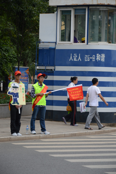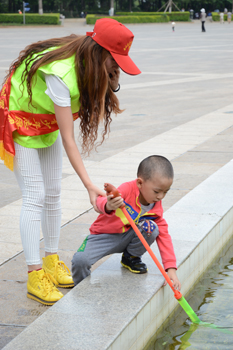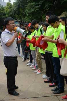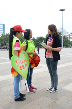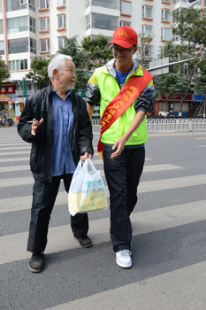 在活动中,我校青年志愿者们身穿荧光色服装,统一佩戴标识明显的红色帽子、红色绶带,分别在西山区兴苑路全线主要交通干道十字路口、碧鸡文化广场和沃尔玛张峰店等区域进行文明劝导、交通引导和清洁城市等志愿服务活动。