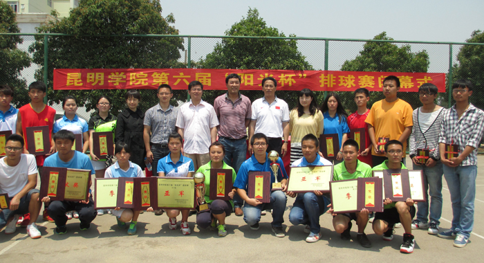 4月24日,由校团委主办、校学生会承办的昆明学院第六届“阳光杯”排球赛在澄明苑排球场圆满落下帷幕。学校工会常务副主席孙晓坤,党委宣传部主持工作副部长董学荣,体育学院院长赵平,校团委副书记魏妮娅,校团委相关人员以及各院系运动员代表共200余人参加了本次活动。
