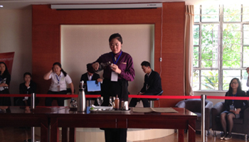 2014年4月底, 由云南省教育厅主办,各高校承办的高等院校职业技能大赛如火如荼展开,在学校教务处的领导下,旅游学院党政领导高度重视,统一部署,由田芙蓉副院长和杨光明副书记带队,积极组织酒店管理教研室和导游教研室的老师对学生进行严格训练和精心备战。经过层层选拔,派出三个参赛队,其中9名学生分别于4月22日参加了由云南旅游职业学院承办的云南省高等院校西式宴会服务技能大赛,4月26日参加了云南大学旅游文化学院承办的“云南省高等院校模拟导游大赛”和云南民族大学职业技术学院承办的“云南省高等院校导游服务技能大赛”三个赛事。