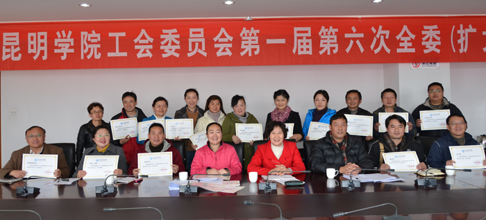 1月16日上午,校工会组织召开了昆明学院工会委员会第一届第六次全委扩大会议暨校工会2013年度基层分工会工作考核表彰会。党委副书记、纪委书记、校工会主席李媛芬出席了会议。学校第一届工会委员会委员,校工会常务副主席孙晓坤,副主席刘宇红以及各基层分工会主席,机关工会组长和校工会全体成员参加了会议。
