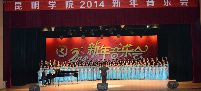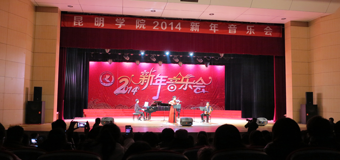 12月30日晚,昆明学院2014年新年音乐会在学生会堂举行。学校党委书记陈世波,校长蒋永文,党委副书记孙勇、李媛芬,副校长熊晶、刘海发,校长助理郑克刚出席音乐会。中层干部、师生代表1300多人参加观看演出。