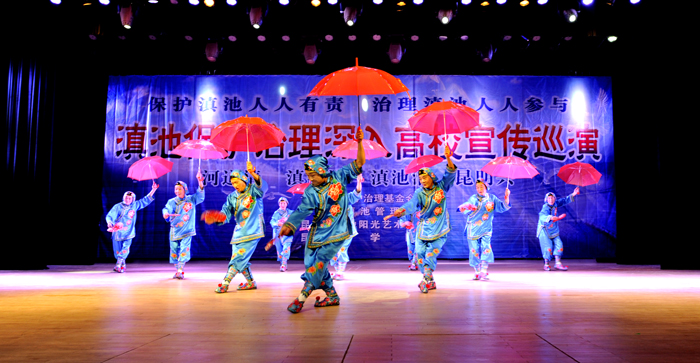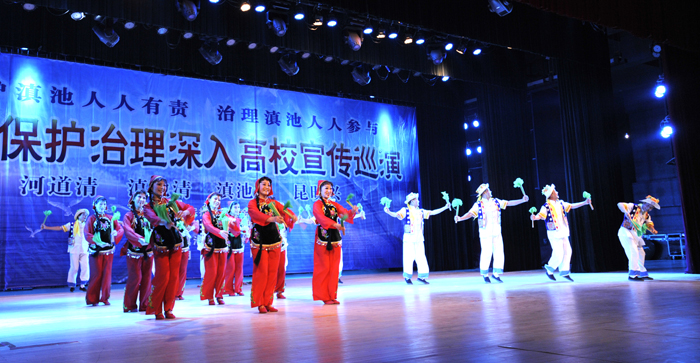 演出中,艺术团把滇池保护治理及生活中的环保知识穿插于每一个节目演出前的介绍中,通过小品与师生的互动,让师生进一步增强保护滇池人人有责,治理滇池人人参与的意识,用自己的一言一行,宣传和感染身边的人们,以实际行动,积极投入到滇池的保护与治理工作中,为我们美丽的母亲湖、为美丽的昆明做出应有的一份贡献。