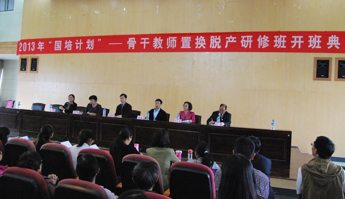 9月2日教师教育学院安排了300名毕业班同学相继到昆明、文山、临沧、昭通、德宏等地幼儿园和小学报到上岗;完成工作交接后,这些学校的250名教师已在9月8日到达昆明学院,开始了为期三个月的培训学习。为此,2013年9月9日上午9时,在昆明学院惟行楼1501报告厅举行了2013“国培计划”——骨干教师置换脱产研修班的开班典礼。由于生命科学与技术系同时也承担了50名中学生物教师的培训任务,所以本次开班典礼三个置换培训项目同时进行。出席开班典礼的有昆明学院副校长刘海发,继续教育学院院长陈嘉,教师教育学院书记王荔、院长唐敏,生科系书记翟书华、主任郭丽红,唐敏院长主持了此次典礼。