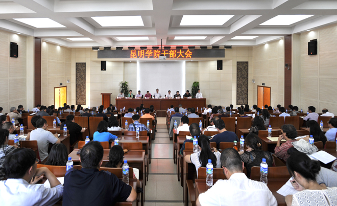 8月27日下午昆明学院干部大会在办公楼D区三楼报告厅举行,校领导、全体中层干部参加了会议。会议由党委书记陈世波主持,党委副书记、校长蒋永文回顾总结上一学年工作,并对新学年工作进行安排布置。