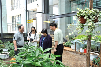 我校党委书记陈世波、党委副书记孙勇、党办主任吉庆华、组织部副部长钱海鼎陪同来宾先后参观了农学院中庭培育温室、图书馆、校团委。参观途中,陈世波书记向郭广银书记介绍了我校近年来的建设发展情况和校园的规划建设,双方领导边参观边交流、探讨办学建校的经验。