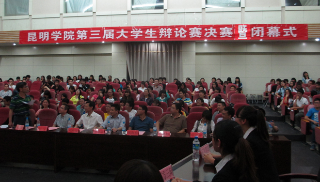 5月15日晚,由校团委主办、校学生会承办的昆明学院第三届大学生辩论赛决赛暨闭幕式在惟行楼1501报告厅举行。学校副校长刘海发,团委书记何昊宸,党委宣传部副部长王宁,党委组织部副部长钱海鼎,学生处副处长侯青妮,招就处副处长吴晓柏,以及来自各院系的师生代表共260余人观看了本场决赛。本场决赛邀请到了云南大学教授、硕士生导师张宇丹,著名文化学者、资深媒体人蔡立,昆明天外有天文化传媒董事长王道平,昆明学院思政部副教授苟园、余太星等五位老师担任评委。