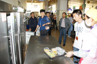 检查组从原材料的进货、粗加工、洗切、烹饪到饭菜的质量、仓库的台账、留样记录、操作间卫生等都做了认真细致的检查,对检查中出现的问题或需要进一步完善的地方提出整改意见。针对食堂目前正在进行的评级工作也提出许多宝贵的意见,对我们下一步工作的开展起到了极大的促进作用。
