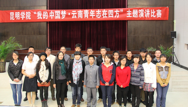 4月12日下午,昆明学院“我的中国梦•云南青年志在四方”主题演讲比赛在惟真楼模拟法庭举行。本次主题演讲比赛是为了深入学习宣传贯彻党的十八大精神,全面贯彻党的教育方针,围绕立德树人根本任务,深入开展中国特色社会主义宣传教育,引导广大学生为实现国家富强、民族复兴、人民幸福的伟大中国梦而发奋学习、不懈奋斗而举办的。比赛由学生工作部(处)主办,社会管理学院承办。