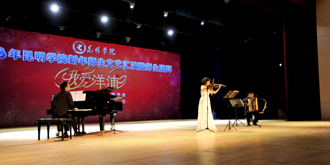 接下来的文艺演出上,由学校教职工,各院系学生以及学生社团联合会、大学生艺术团表演的节目精彩纷呈。大学生艺术团的舞蹈《新禧俏花灯》、我校留学生代表的歌舞表演《昆明欢迎你》、跆拳道协会表演的《胜之道》、教职工代表的乐器合奏《咆哮的风箱》、旅游学院带来的花样调酒《金蛇生瑞》等精彩的表演一次次将活动推向高潮,最后,节目在由美艺学院彭善秀教授作词、音乐学院李颖玲副教授作曲并指挥、音乐学院、教师教育学院、美艺学院学院学生共130人组成的大合唱《昆明学院,我要为您图强》歌声中圆满落下帷幕。