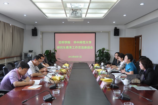 座谈会上,熊晶副校长首先介绍了昆明学院2008年以来的跨越式发展,重点对学校“十二五”硕士点建设学科及四个研究平台的研究现状及发展构想进行了阐释。王恩科副校长也对华中师范大学进行了介绍,华中师范大学是教育部直属的重点综合性师范大学,国家“211工程”重点建设高校,国家“985”优势学科创新平台建设高校,国家首批批准的专业学位授予单位之一。在了解昆明学院的学科设置、学位点建设等情况后,王副校长认为华中师范大学与昆明学院互补性强,为了促成中、西部院校的协同创新,共同提升院校内涵建设能力,两校之间可先签订框架性合作协议,正式搭建起校际合作关系。进而可在师资培训(含教师学历提升、硕导资格认定)、本科毕业生考研、农村调研基地、滇池水污染治理等四个方面签订具有可行性的具体合作协议,将两校的合作落到实处。