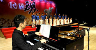 为了纪念我校知名校友、人民音乐家、中华人民共和国国歌《义勇军进行曲》的作者聂耳诞辰一百周年,昆明学院于6月29日晚在学生会堂隆重举行“民族魂—纪念聂耳诞辰100周年音乐会”。学校党委副书记、纪委书记李媛芬,部分中层干部和师生共1300多人观看了音乐会。参加演出的主要有音乐学院、教师教育学院的师生和学校大学生艺术团的同学。