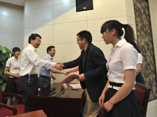 会议还举行了就业目标责任书签订仪式。梁晓谷书记、陈世波校长分别与教学院(系)代表经济学院、教师教育学院的书记、院长签订了“昆明学院2012年就业工作目标责任书”。