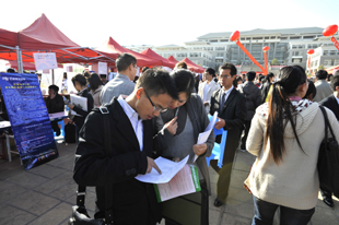 为使广大毕业生和用人单位有一个交流方便、沟通平等、“双向选择”的就业平台,促进我省2012届毕业生充分、顺利就业, 2月25日,由云南省教育厅主办、昆明学院、云南省大中专毕业生就业服务中心和昆明经济技术开发区共同承办的“云南省2012年综合类院校毕业生和毕业研究生双向选择洽谈会暨昆明学院校园大型招聘会”在我校聂耳广场隆重举行。