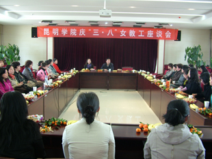 3月8日下午在学校行政楼502会议室,校工会召开了“昆明学院庆‘三八’女教职工座谈会”。学校在教学、科研、管理服务等方面做出一定成绩,具有代表性的女教职工近50人参加了座谈会,校工会常务副主席孙晓坤同志和校工会女工委主任周明同志参加了座谈会,座谈会由工会副主席何俊同志主持。在座谈会上,工会常务副主席孙晓坤首先代表学校党政领导向与会的女教职工表示了节日的问候。参加座谈会的女教职工们,对学校的发展建设,以及在工作、生活等方面畅所欲言,表示要进一步充分发挥女教职工“半边天”作用,为昆明学院的建设树形象、展风采、做贡献。在座谈会中,工会常务副主席孙晓坤还就女教职工关心的教师子女入幼、入学,女工健康,以及工作生活中遇到的一些困难和问题等进行了一一解答。