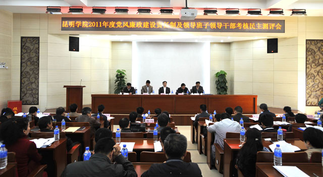 3月9日,由省教育厅巡视员郭玉鉴同志任组长,云南财经大学党委副书记潘祖和同志、云南民族大学纪委书记卢培义同志为副组长,云南财经大学、玉溪师范学院、文山学院、昭通师专和云南司法警官职业学院相关干部组成的省委第五检查组对我校2011年度推进惩防体系建设和落实党风廉政建设责任制情况以及领导班子领导干部年度工作进行检查考核。学校党政领导班子成员、中层正职领导干部(含主持部门工作的副职领导干部)、近三年退休的校级老领导、部分党代表、人大代表、政协委员,民主党派基层组织主要负责人,教职工代表91人参加了检查考核汇报会。汇报会由学校党委副书记、校长陈世波同志主持。