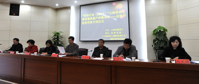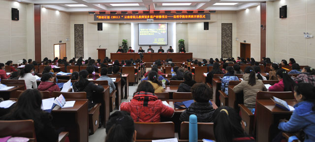 2012年2月6日,“国培计划(2011)”——幼儿教师置换脱产研修培训班在昆明学院杨浦校区行政楼报告厅隆重举行开班典礼。省教育厅师训处李建福副处长、昆明市教育局李瑞林副局长、师训处王建昆处长、昆明学院刘海发副院长以及教师教育学院、职教中心有关负责领导出席典礼。来自玉溪、普洱、红河的150名幼儿教师参加了开班典礼。典礼由昆明学院职教中心主任熊绍宏主持。
