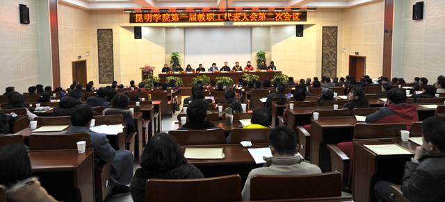 12月24日,我校在新校园隆重召开了“昆明学院第一届教职工代表大会第二次会议”,全面审议、通过了校长陈世波作的《昆明学院2011年行政工作报告》,并认真讨论了《昆明学院“十二五”事业发展规划纲要(征求意见稿)》。学校118名正式代表和50名列席代表参加了会议。