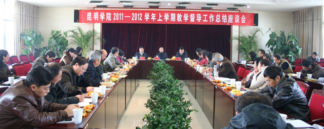 12月30日上午,我校在办公楼502会议室召开2011——2012学年上学期教学督导工作总结座谈会。学校党委书记梁晓谷、校长陈世波、副校长罗明东出席座谈会,教学督导组全体成员、学校各教学单位行政主要负责人及分管教学的负责人、相关职能部门主要负责人和教务处科级以上干部参加了座谈会。座谈会由罗明东副校长主持。。