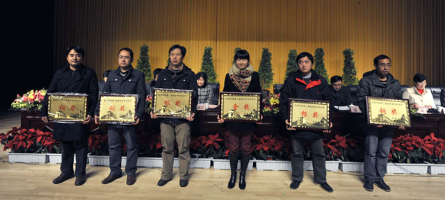 在2012年开年的1月5日上午,我校在学生会堂隆重召开2011年科研奖励大会,全体校领导出席奖励大会,学校全体中层干部、副高及以上职称的教师,博士、硕士学位获得者,获科研奖励全体教师,第二届青年学术科技作品竞赛获奖学生,各教学院(系)教师、团学干部和相关部门干部共计1300余人参加了奖励大会。大会由熊晶副校长主持。