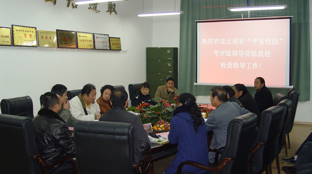 12月23日下午,由云南省教育厅、云南省治安总队、昆明市公安局经济文化保卫分局组成的云南省“平安校园”检查考评组莅临学校对我校创建省级平安校园进行检查考评。