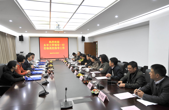 东华大学王副书记首先感谢昆明学院的热情接待。他说,东华大学与昆明学院有着长期良好的合作关系,今天很高兴率队到访贵校,与孙副书记和部门负责人一起座谈交流,其目的是进一步加强两校合作,通过两校对口部门之间党务党建工作的交流,达到工作经验与信息共享,使双边都从中得到借鉴和启发,更好地促进两校的建设发展。他说,东华大学在办学发展中和昆明学院有许多共性的地方,昆明学院从合并组建到今天的发展,在很短的时间内,步入建设发展正轨,取得喜人成绩,值得敬贺。希望与昆明学院同仁的座谈交流,从中得到启发,同时通过对口部门之间的面对面交流,起到相互借鉴和学习的目的。最后,王副书记介绍了东华大学在教学、科研、师资、招生等方面情况及学校目前的建设发展。