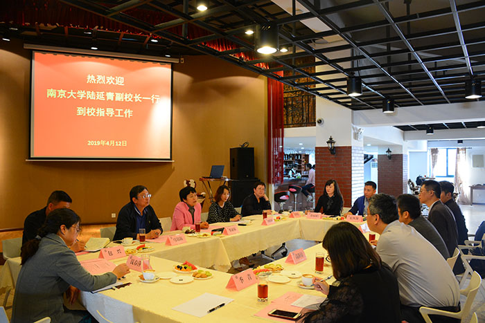 4月12日,南京大学陆延青副校长一行到我校调研。我校校长黎素梅,副校长马银海热情接待陆延青副校长一行并与来宾进行交流座谈。