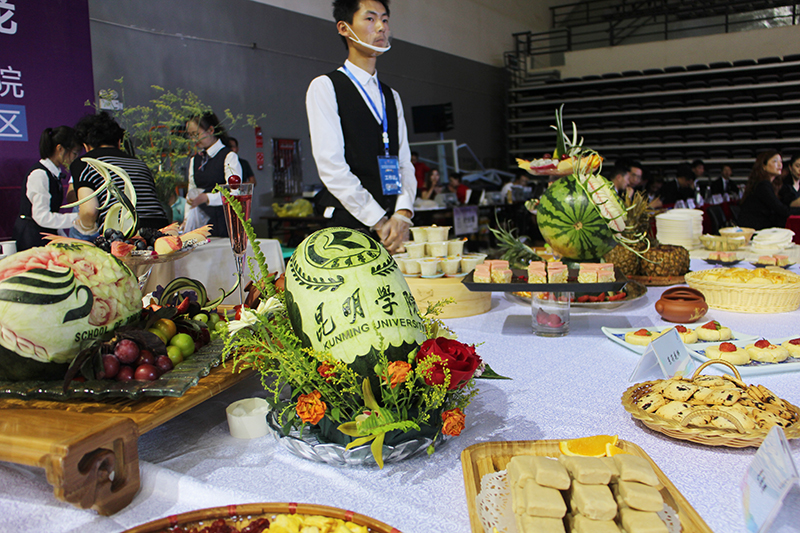 当晚比赛结束后,大赛组委会还举行“体育舞蹈沙龙”活动,邀请与会领导、嘉宾、裁判组、竞赛组、明星选手等出席,鉴赏昆明学院旅游学院、美术与艺术设计学院学生分别带来的专业技能茶艺、果盘设计、酒水、冷餐和刺绣、雕刻、瓷器等手工艺术品,并进行相关文化交流。