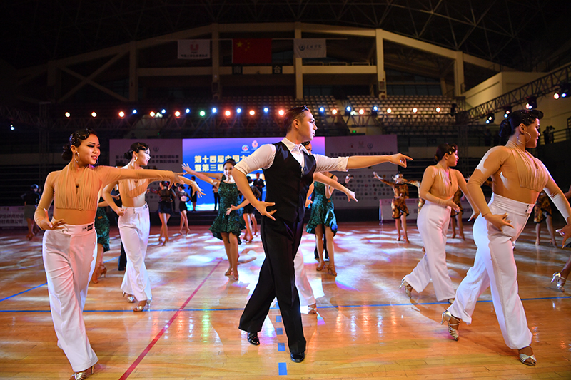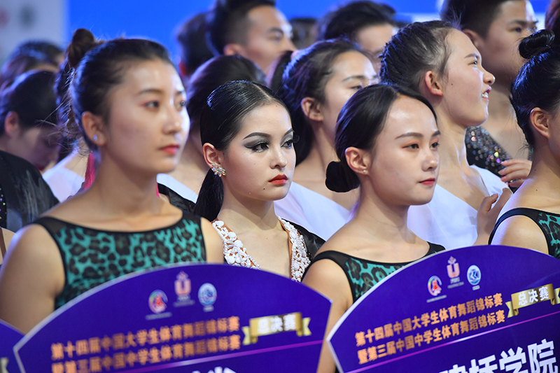 20时许,决赛正式开始。各选手为了自己冠军之梦,跃跃登场使出浑身解数,纷纷亮相展示自己的舞蹈技艺。来自北京大学、中南大学、郑州大学、中央民族大学、华东政法大学、北京体育大学、云南大学、昆明学院等78所学校千余名选手,分别对127个比赛项目展开激烈角逐。参赛选手将集音乐、舞蹈、体育、形体等多种艺术于一体的艺术盛宴呈现给观众。靓丽的身影、婀娜的舞姿、澎湃的激情,把体育舞蹈的力与美展现得淋漓尽致。