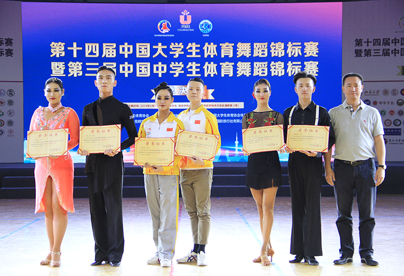 开赛前,大赛组委会还对网友评选出的“第十三届中国大学生体育舞蹈锦标赛暨第二届中国中学生体育舞蹈锦标赛”优秀明星选手颁奖。中国大学生体育协会常务理事华爱军为获奖选手颁奖。
