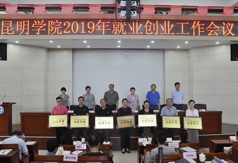会议开始,熊晶副书记宣读了《昆明学院关于表彰2018年就业创业工作先进集体的决定》,与会校领导为获得先进集体和单项奖的单位颁发了奖牌。