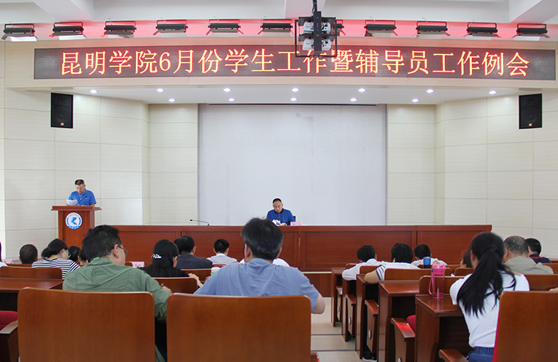 会上,保卫处通报校园治安情况;校团委通报了2019年全省“挑战杯”大赛的参赛获奖情况及“第二课堂”工作进展情况,对做好2019届毕业生团组织关系转接工作作了安排;学生处对4月份优秀主题班会评选情况、高校文化节系列活动之校级“看照片•讲故事”大赛获奖的情况、我校组织参加2019年云南省高校生态环境征文和宣传作品创意设计比赛的情况及作品获奖情况、各学院学生征兵报名情况进行了通报,对辅导员职称申报和职级评定工作、组织师生参加云南省“最美云南•壮美云南——我和我的祖国”微视频大赛、组织开展高校宿舍文化节、2019届毕业生离校工作及毕业典礼、学生生源地贷款、易班建设、端午节小长假学生的教育管理等工作进行了安排布置。