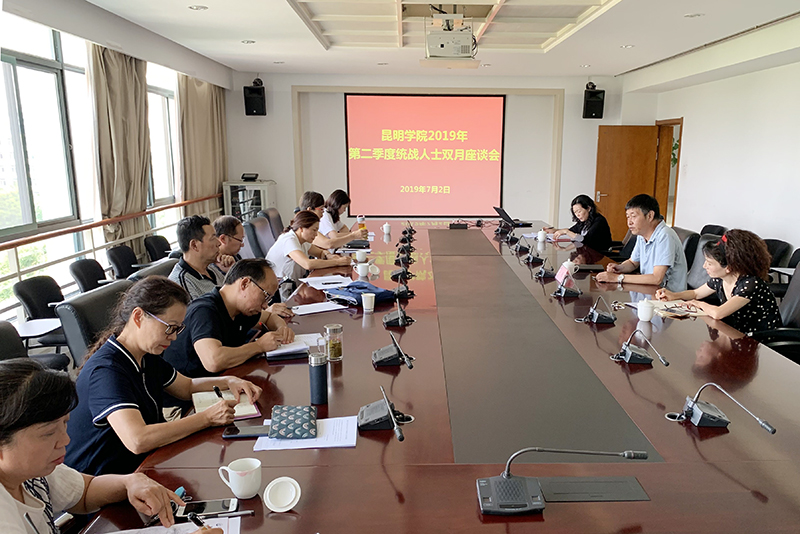 7月2日下午,学校召开2019年第二季度统战人士双月座谈会。副校长王凡主持会议并讲话,学校民主党派基层组织、联谊会负责人及代表参加了座谈会。