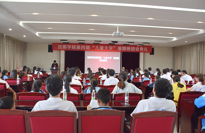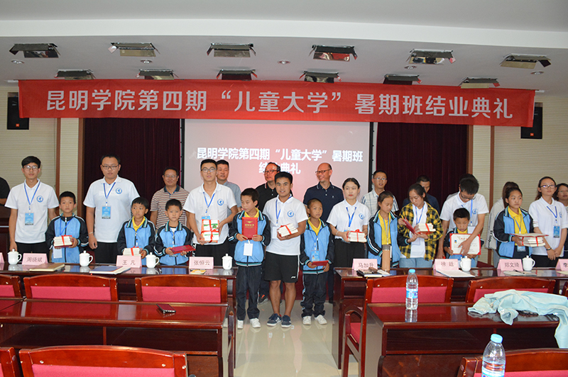 7月23日,由昆明学院、红河州红河县垤玛乡政府联合主办的第四期儿童大学暑期班结业典礼在我校举行。学校副校长王凡,垤玛乡党委副书记、乡长周绕斌出席结业典礼。来自昆明学院扶贫挂联点垤玛乡中学、腊哈村小学、新民小学的31名学员圆满完成了第四期儿童大学暑期班各项学习任务,顺利结业。