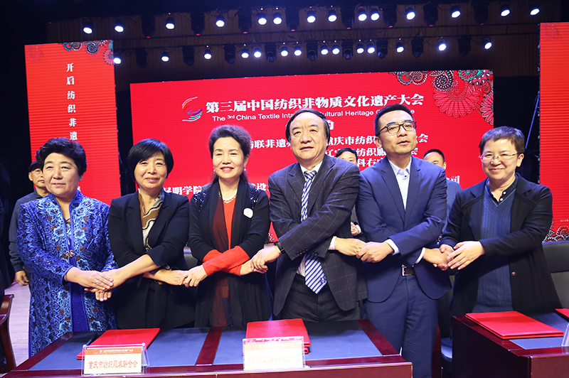 会议期间,中纺联非遗办与重庆市纺织服装联合会、辽宁省纺织服装协会、内蒙古科右中旗进行战略合作签约,昆明学院与首创置业首新事业部昆明公司进行战略合作签约。纺织非遗相关行业和文创企业的跨界融合,共同促进纺织非遗的多领域开发和多元化发展。