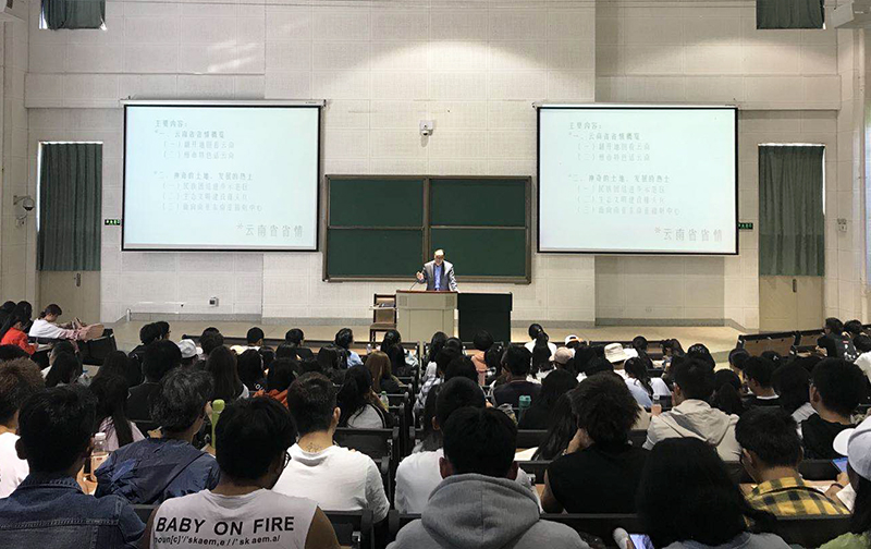 陈永明书记从“翻开地图看云南”“州市特色话云南”“新时代云南发展的三个定位”等方面,为同学们介绍了云南的地理位置、历史沿革、自然旅游资源、16个州市风貌,并结合云南当前发展形势,宣讲了习近平总书记提出把云南建成“民族团结进步示范区、生态文明建设排头兵、面向南亚东南亚辐射中心”三个定位的重要指示精神。讲解引经据典,课件PPT图文并茂,运用大量的最新数据和事例,佐证观点、展示云南辉煌成就。
