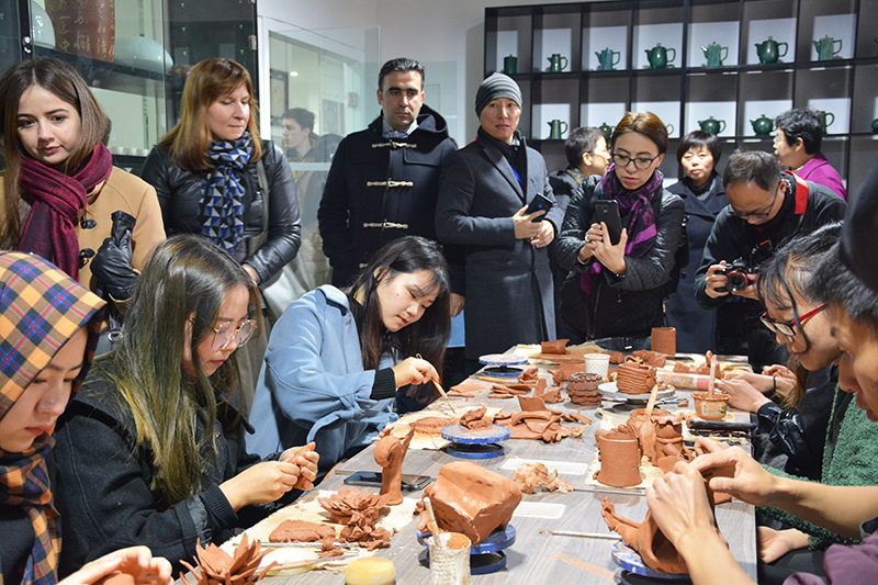 座谈前,熊晶副书记和董建华副校长陪同来宾参观了紫云青鸟昆明学院艺术众创空间、机电工程学院轨道交通实验室,感受独具云南特色的乌铜走银、扎染以及深具中华传统魅力的刺绣、陶艺等非遗传承技艺和昆明地铁轨道交通发展及人才培养模式。随后,代表们还前往中国—上合组织青年交流中心、创客空间及烹饪实训中心,详细了解昆明学院学生“双创”工作和“中心”工作成效,实地观摩旅游学院师生烹饪实践教学课。学校极具特色的实践教学方式和同学们精致独特的工艺作品、精湛的技艺水平让代表团成员赞叹不已。