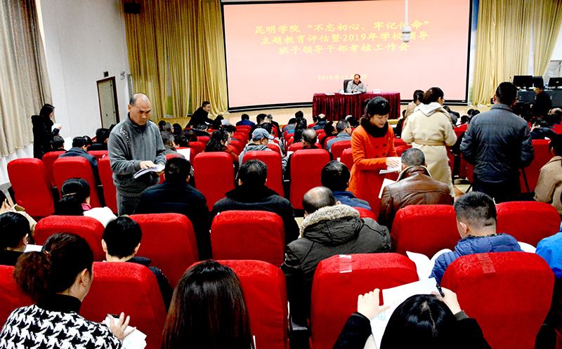 12月6日,昆明学院“不忘初心、牢记使命”主题教育评估暨校级班子和领导干部考核会在旅游学院3D报告厅召开。学校党委书记陈永明主持会议并代表学校作主题教育总结。省委第21指导组有关同志到会指导。