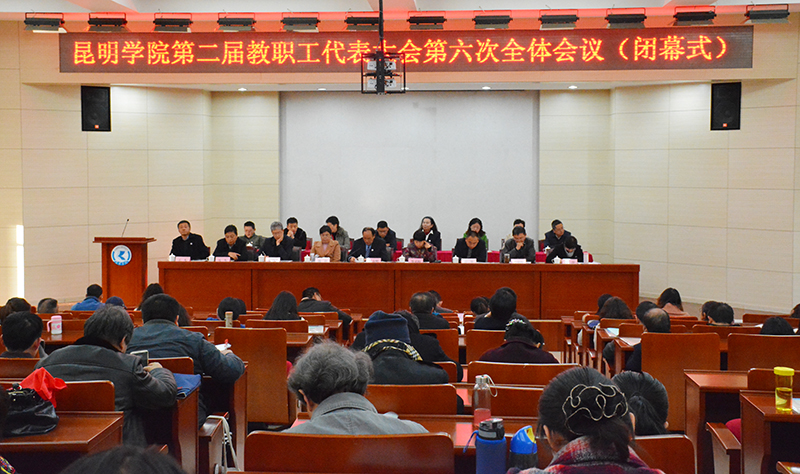 12月31日,昆明学院第二届教职工代表大会第六次会议在办公楼D区三楼报告厅胜利召开。会议以习近平新时代中国特色社会主义思想为指导,深入贯彻全国教育大会和新时代全国高等学校本科教育工作会议精神,把握云南本科教育改革发展的核心任务,巩固“不忘初心、牢记使命”主题教育整改成果,结合转型发展、内涵提升、重点突破的发展思路,分析形势,总结经验,深化本科教育教学改革,审议完善学分制综合改革方案及主体文件,统一思想,上下联动,形成合力,把深化学分制改革这一本科教育教学中心工作做细做实,做出成效。