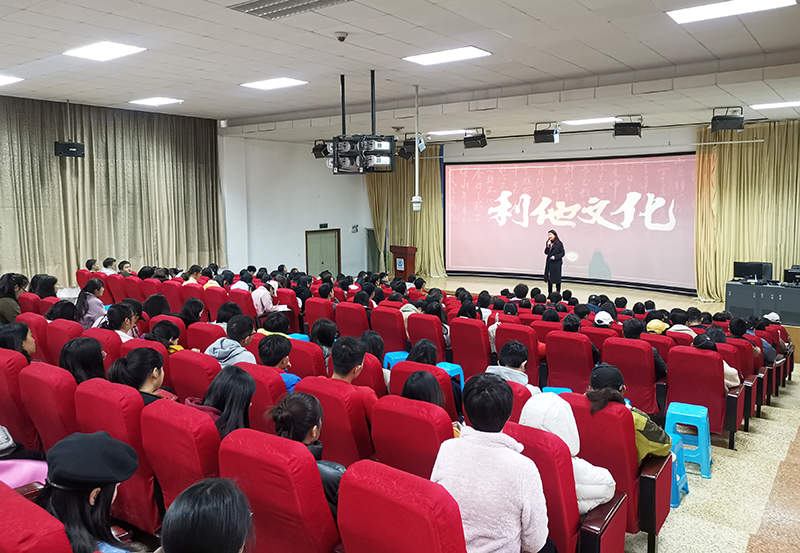 上海太屋集团总经理杨彬女士从太屋集团的企业文化“利他文化”讲起,讲述了毕业后的关键十年,拥有“利他”能量的毕业生能够快速成长,迅速打通职业发展的通道。她说,企业发展追求的是长久,不图大,企业员工要感恩父母,感恩社会,崇尚道德品质与业绩第一同等重要。她还介绍了上海太屋集团及其岗位需求情况,诚挚欢迎我校毕业生到企业就业发展。