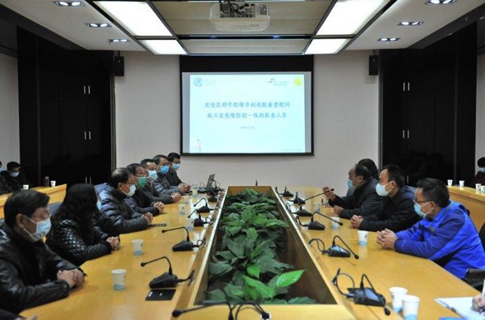 昆明学院副校长、昆明市第一人民医院院长、昆明学院直属附属医院院长李立,昆明市第一人民医院党委书记解宇分别向陈永明书记一行介绍了医院抗击疫情采取的一系列有力措施及医院收治发热病人、疑似病例的情况,特别对全体医务工作者取消休假,奋不顾身投入到抗疫一线,守纪律、讲奉献的情况和事迹作了具体介绍,并就医院当前面临防护物资紧缺的问题作了详细说明,对昆明学院心系一线职工表示感谢,表示将按照省、市安排部署做好本职工作,守护人民健康。