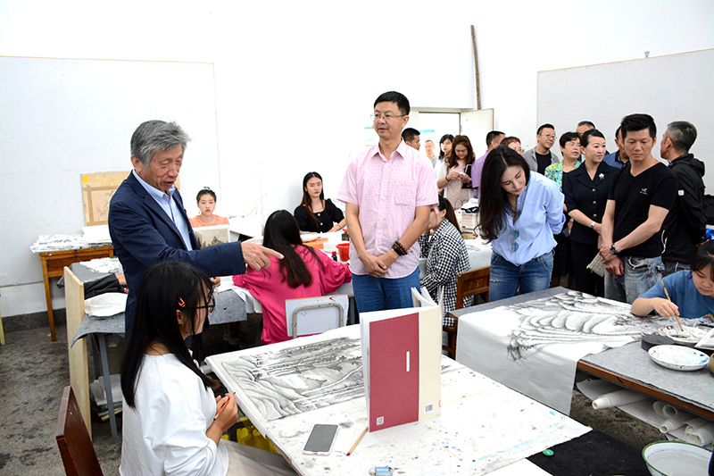 范迪安院长来到美术与艺术设计学院,仔细听取美艺学院办学情况介绍,走进美术教学现场,实地指导学生作画,向学生讲解学习艺术的途径与方法。实地参观了解后,范迪安院长对美术与艺术设计学院开展的教学工作给予了充分肯定。随后,范迪安院长一行还参观了艺术众创空间非遗刺绣大师工作室、蜡染艺术工作室、陶艺工作室。