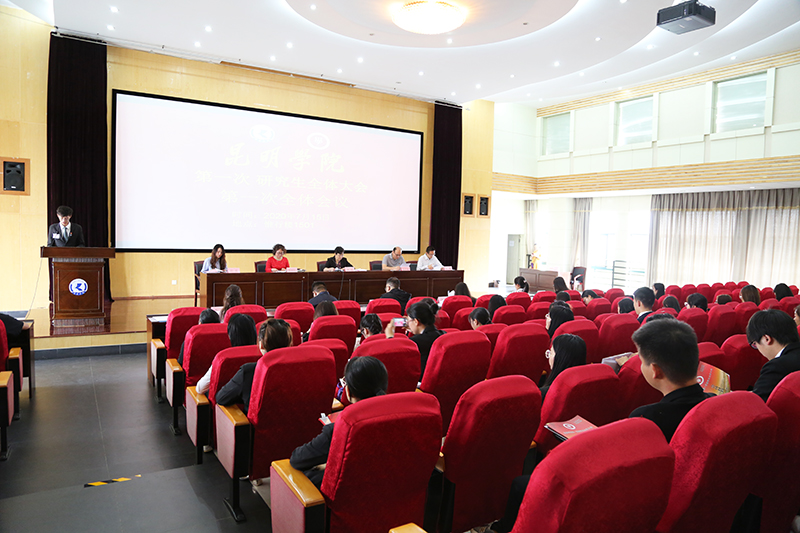 昆明学院第一次研究生全体大会在《光荣啊,中国共青团》的歌声中圆满闭幕。