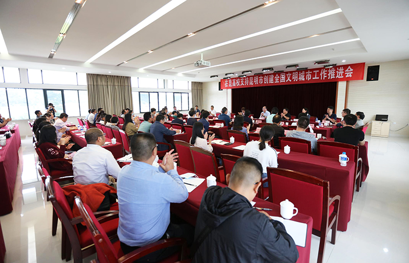 省文明办创建处,昆明市创文总指挥部办公室有关负责人,昆明市教育体育局主要领导、分管领导及相关处室负责人,五华区、盘龙区、西山区、呈贡区委宣传部部长、文明办主任,高新区、经开区、度假区党(工)委工作部主要领导、文明办主任,昆明学院相关部门领导参加会议。