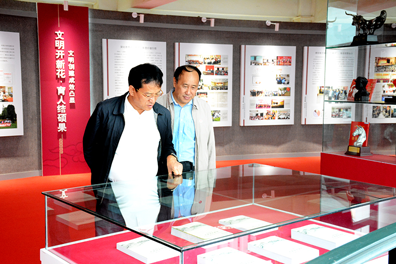 考评组参观“立德铸魂 以文化人——昆明学院创建第二届全国文明校园成果主题展”