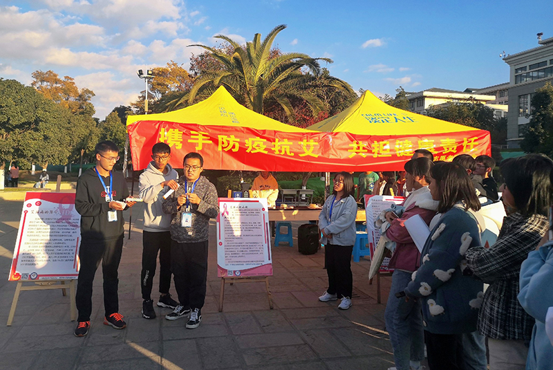 12月1日,校青年志愿者联合会在聂耳广场举办了以“携手防疫抗艾,共担健康责任”为主题的防艾宣讲活动。