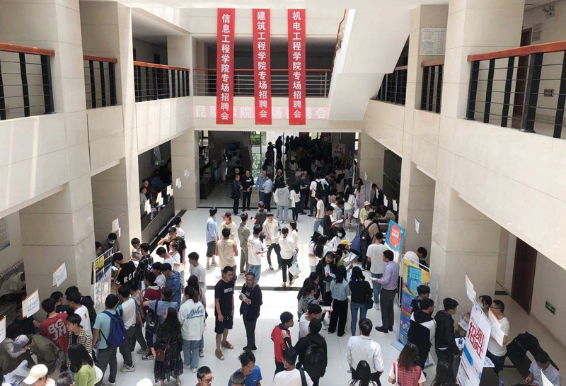 4月14日,学校招生就业处主办,信息工程学院、机电工程学院、建筑工程学院联合承办的“昆明学院2021届工程类专场招聘会”在学校行政楼D区一楼招聘大厅举行。相关职能负责人、毕业生班主任及2021届毕业生到场参会。各学院院长、书记亲临招聘会现场指导工作,了解毕业生和用人单位的就业、选人用人情况。