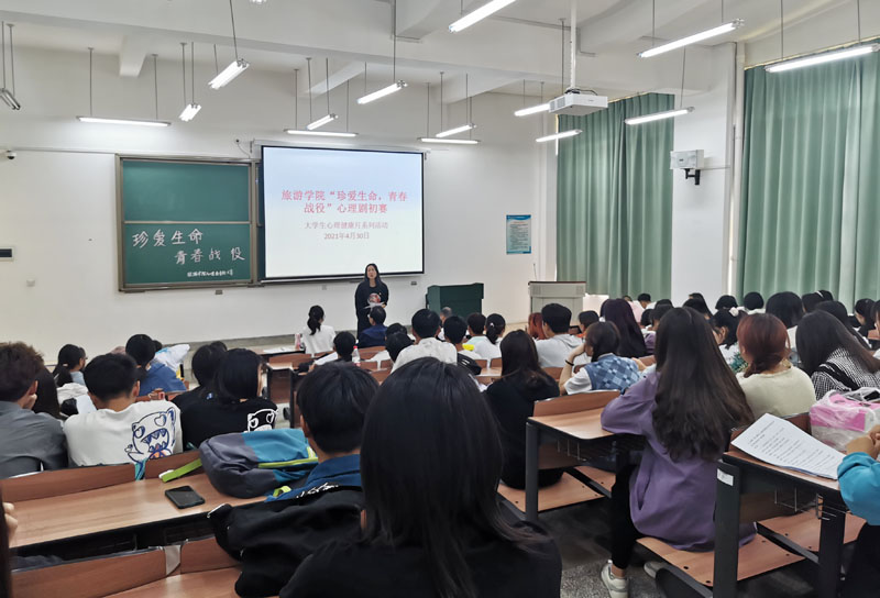 为丰富广大同学的课余生活,关注心理健康,提高同学们的心理素质,为同学们提供一个舞台来表达自己真实的内心感受,再现学生的生活、学习和交往中的冲突、烦恼和困惑。4月30日,旅游学院在博雅楼2104教室举办以“珍爱生命,青春战役”为主题的昆明学院第十三届大学生心理情景剧大赛旅游学院初赛。学院副书记刘艳萍和辅导员老师应邀做参赛评委,学院全体心理委员及各参赛班级同学观看了整场比赛。最终2019级烹饪与营养教育3班《解忧交易铺》以92分的高分获得初赛一等奖。